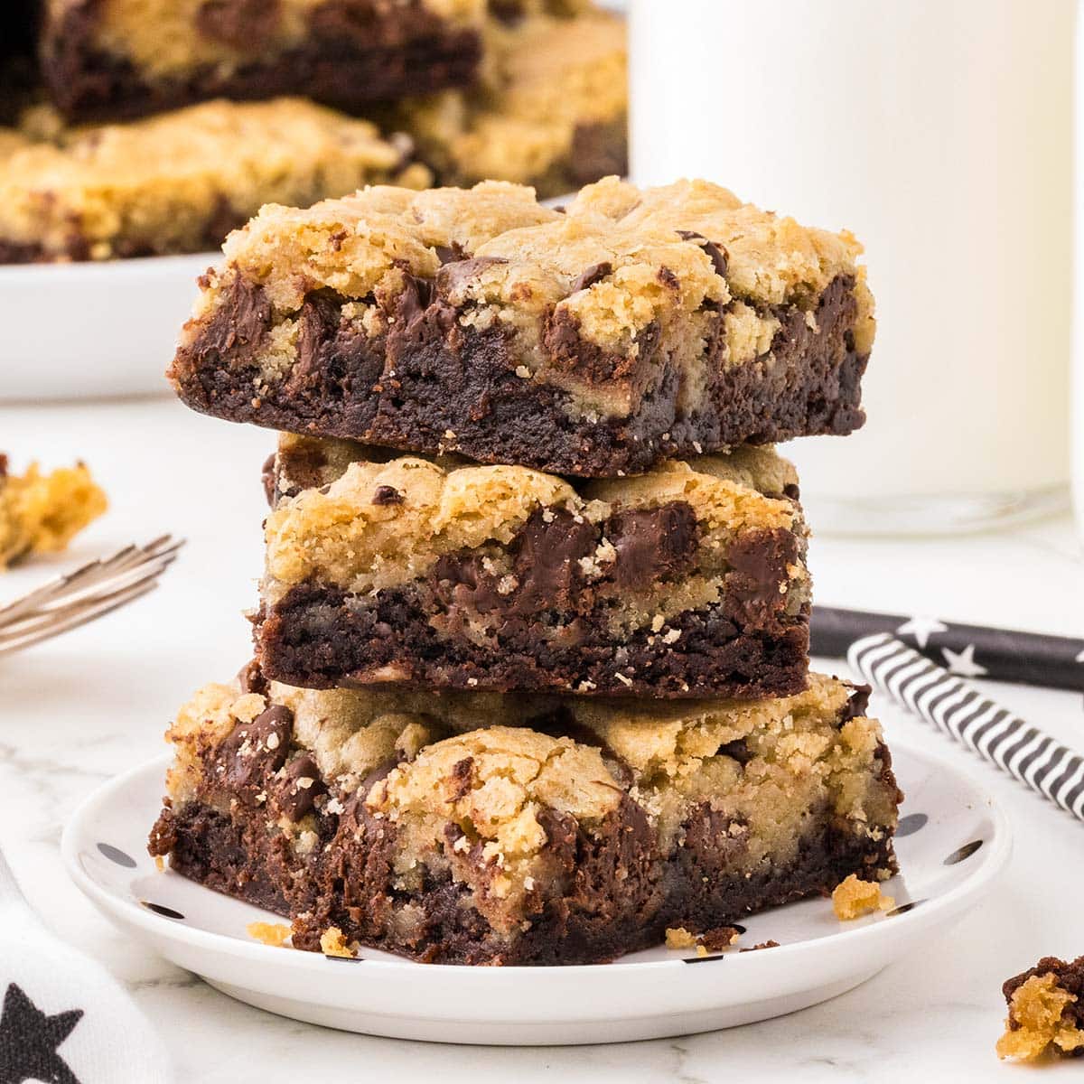 - Drop spoonfuls of the cookie dough over the brownie layer evenly.