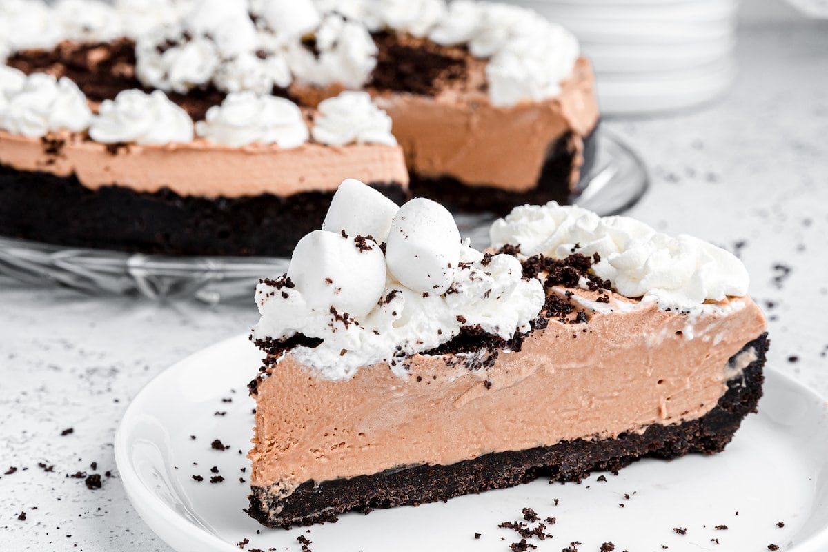 - Pour the marshmallow-chocolate filling into the prepared crust and smooth the top. Chill in the refrigerator for at least 2 hours before serving.