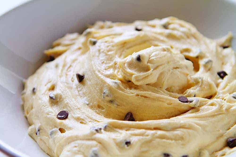 - Remove bowl from mixer and stir in mini chocolate chips until evenly distributed.