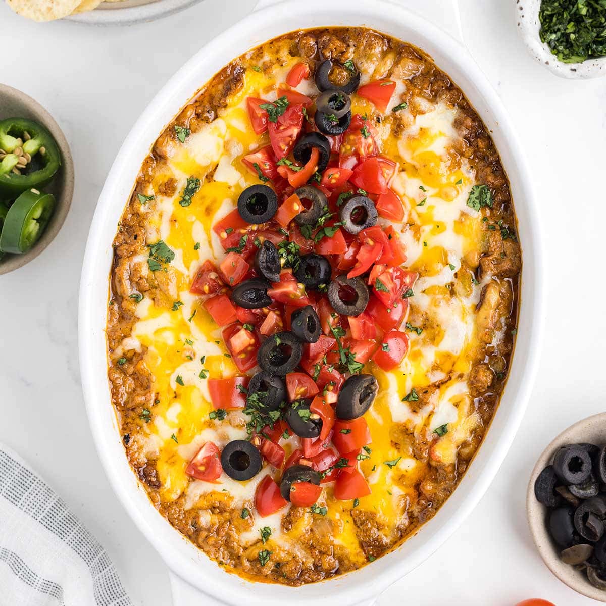 - Top with desired toppings and serve warm with tortilla chips.