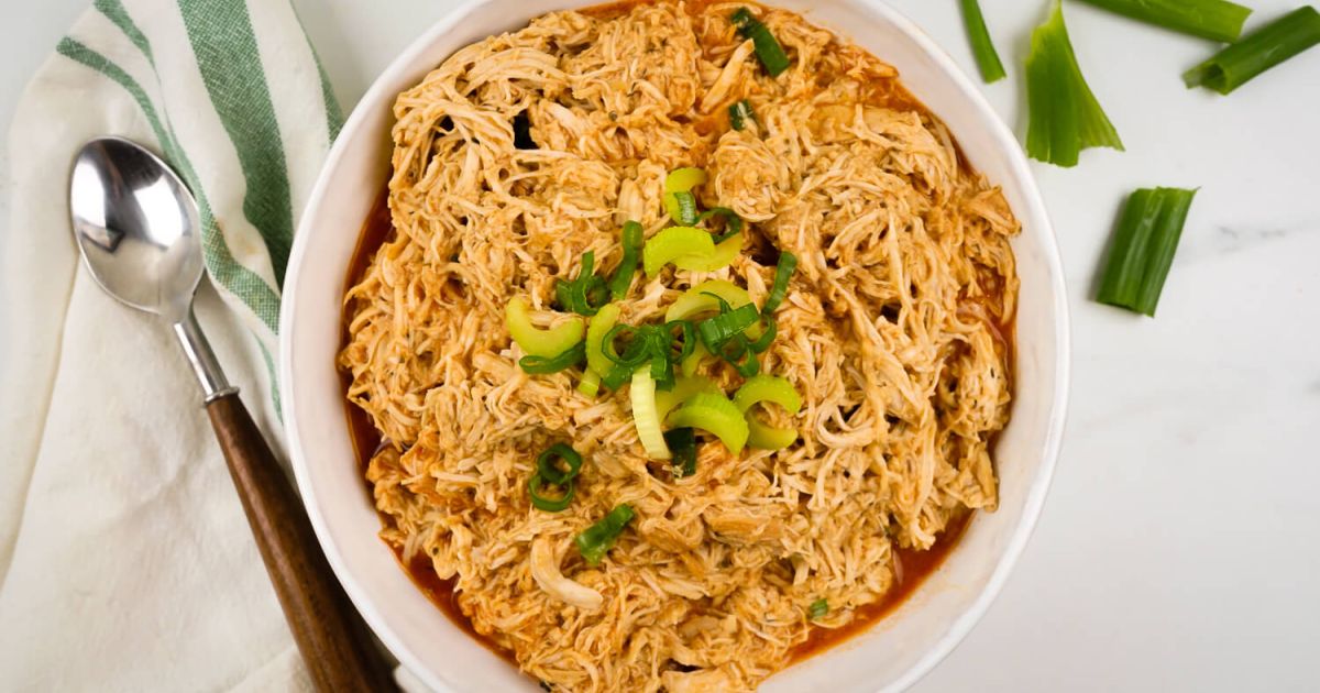 A delicious and easy slow cooker buffalo chicken perfect for sandwiches or salads.