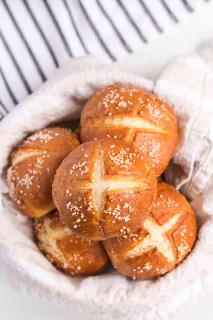 - Divide the risen dough into 6-8 pieces. Roll each into a smooth ball and place on parchment-lined baking sheet. Cover and let rise another 45 minutes.