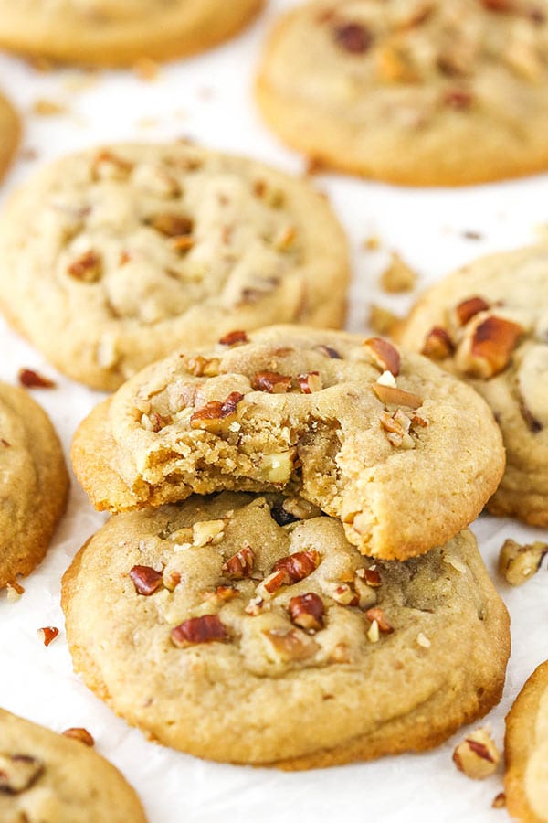 In a separate medium bowl, whisk together the granulated sugar, brown sugar, vegetable oil, eggs, and vanilla extract until smooth and well combined. You want the sugars to mostly dissolve here. This mixture should look creamy and luscious. Sometimes I even warm my eggs up a bit by letting them sit in warm water for 5 minutes; it helps them incorporate beautifully.