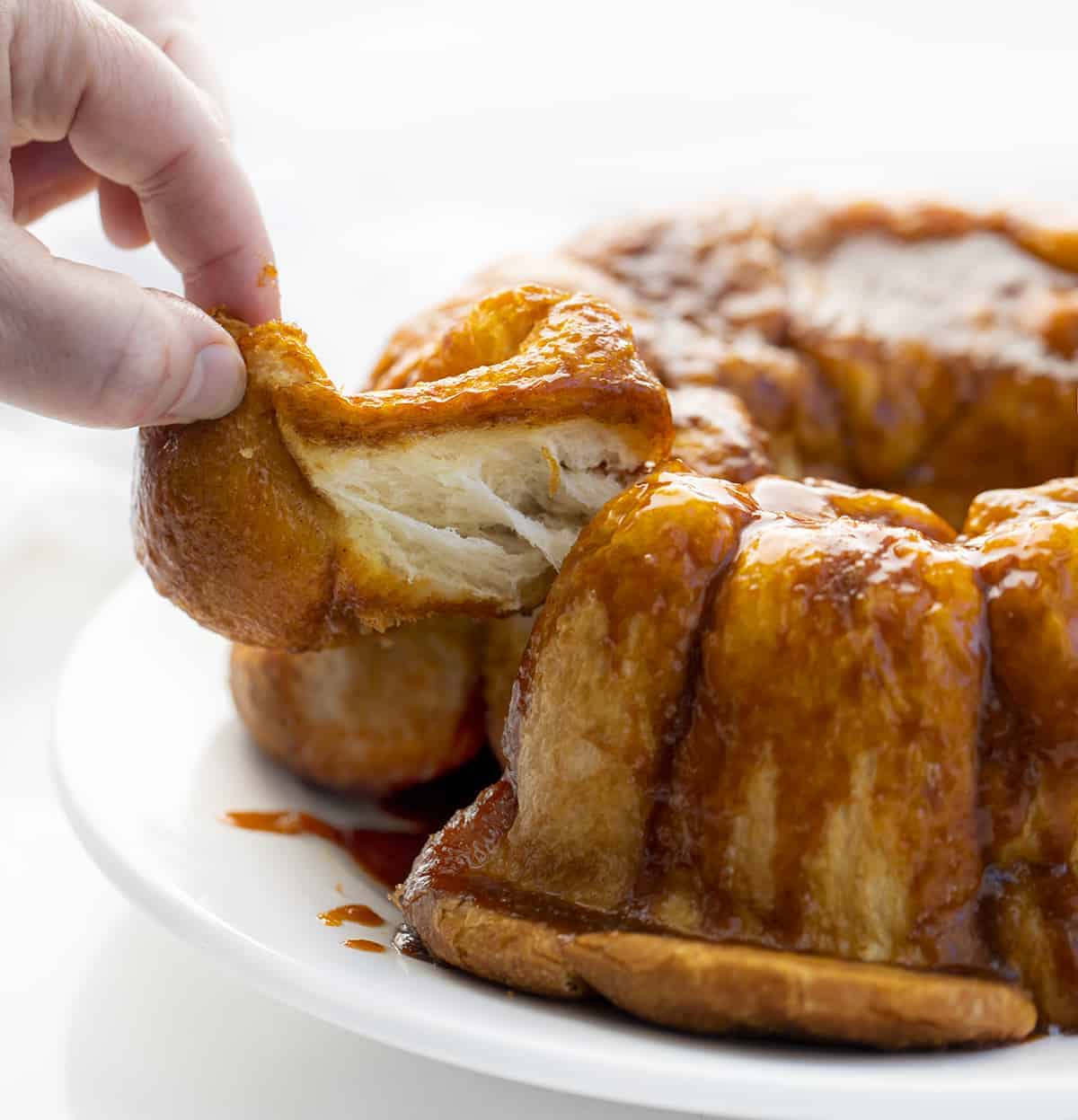 This monkey bread is best enjoyed warm, with a drizzle of caramel or a dusting of powdered sugar.